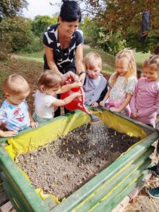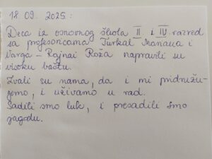 У оквиру заједничких активности ученици другог и четвртог разреда Основне школе „Јожеф Атила“ из Купусине , и деца из предшколске установе „Пчелица“ из објекта „Медењаци“, направили су башту, у којој су садили лук и јагоде.