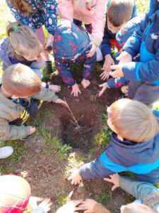 Деца из вртића “Дуга” у Свилојеву су обележила дан шума садњом храста и бора. У томе су нам помогли експерти Горан Војновић, чувар заштићеног подручја шумска управа “Апатин” и Андреја Лазовић, мастер инжињер шумарства из “Војводинашуме”. Обрадовали су нас садницама и уз њихову помоћ смо обогатили наше двориште за два нова стабла.
