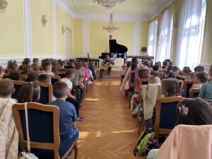 На позив музичке школе “Стеван Христић”, наши предшколци су данас, са својим васпитачицама, у прекрасном амбијенту концертне сале, уживали у музици професора и ученика. Музика је долазила из различитих инструмената, стварајући одушевљење и радост код публике. Својеврстан начин промоције школе, позива деци, неговања музичке културе и доживљаја уметности.