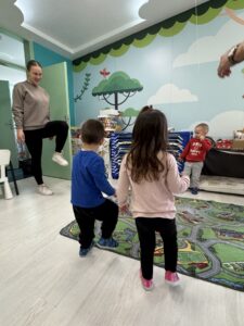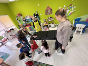 Децу из јаслене групе “Лоптице”,  Биљане Варцаковић и Дијане Мајсторовић, посетила је сестра детета из групе Милана, Ања Јаковљевић. Она је на занимљив начин представила и упознала децу са својим будућим занимањем, физиотарапеут.