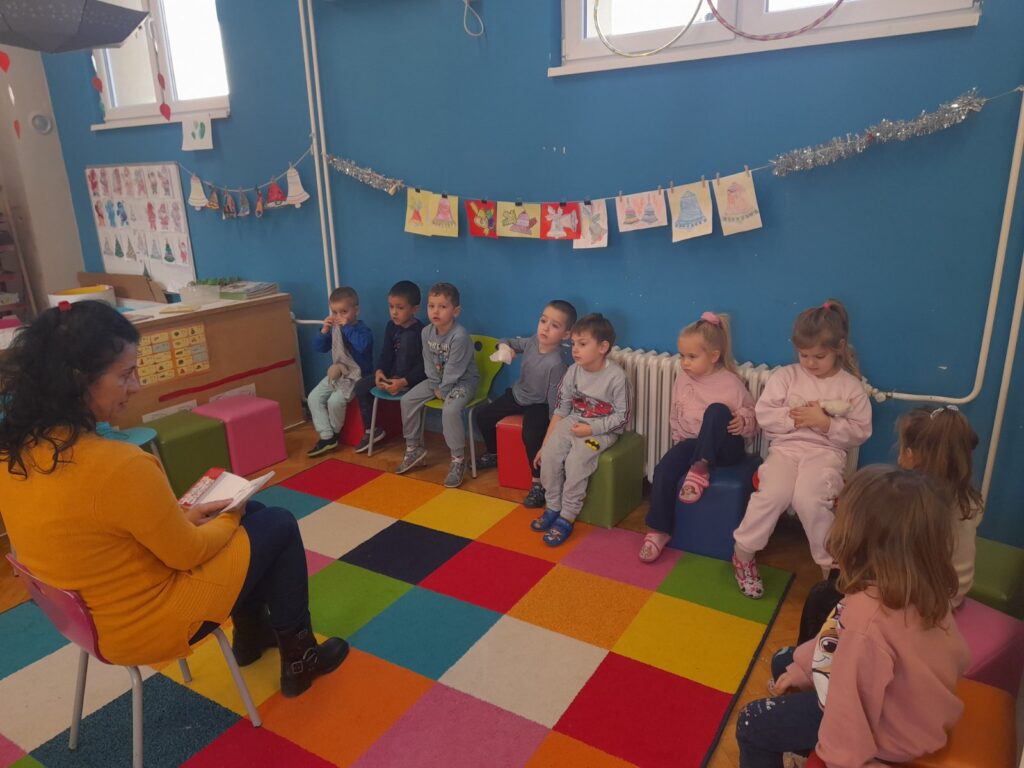 18.12. 2025 године, децу васпитача Ларисе  Мандић  из објекта „Лептирићи“, Пригревица,  је посетила  библиотекарка Мирјана Грња у склопу пројекта “Звони звонце”. Прочитала је деци сликовницу “Шта све Ана зна о Новој години” . Деца су заинтересовано слушала причу и   проширила су  разговор на очување природе и  сађење јелке . Бибилотекарка је донела неколико предивних књига и сликовница да деца  читају наредних дана ( “Деда Мразових 12 дана до Нове године”, “Тајна окићене јелке”, “Стижу празници” ).