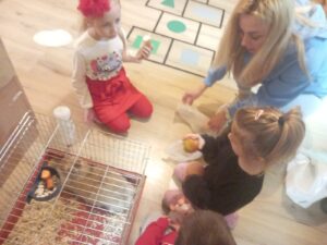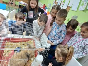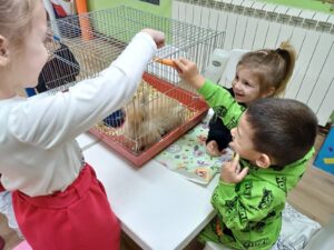 У оквиру пројекта”Ми смо зекови, зеке” Калинина мама нас је изненадила . Донела нам је зечицу Милу. Мазили смо је, хранили, у друштву старијих другара из објекта, певали смо јој, сазнали да спава отворених очију, чули како се оглашава и како грицка шаргарепу, јабуке и семенке својим предњим дугим секутићима.И зеко и ми смо данас узивали у вртићу. Захваљујемо се мами Стојанки Милетић. Мешовита група из објекта “Звездице” васпитачица Тање и Драгане.