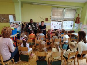 У оквиру пројекта”Музички тобоган”, деца и васпитачи Јасмина Бојковић и