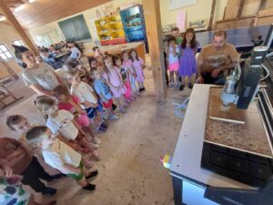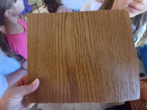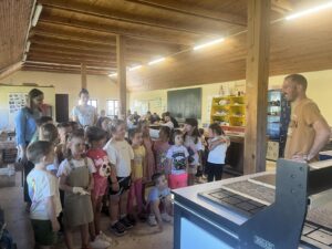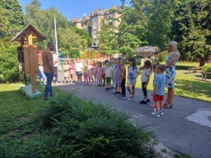 Децу је дочекао профессор стручних предмета из области шумарства и обраде дрвета Иван Перишкић који је заједно са ученицима направио “Хотел за инсекте” и деци причао о његовом значају. Провео нас је кроз радионицу и објаснио деци како су направили “Хотел за инсекте”. Такође, на поклон смо добили плочу са називом нашег објекта “Звончићи”, те нам је приказао рад ЦНЦ машине.
