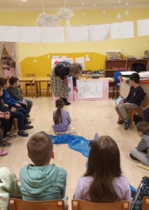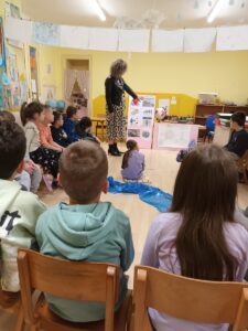 У оквиру пројекта “Пљус, пљус -бућ, бућ” групу васпитача Тање Зрињанин и Валентине Вароши посетила је Гаврилова мама Невена Ћук запослена у Заводу за јавно здравље Сомбор, а тренутно ради као лекар на специјализацији из хигијене. Децу је упознала о томе како вода долази до домаћинстава, саставу воде ,значају воде за човека и за живи свет као и о провери бактериолошке исправности воде. Деца и васпитачи се захваљују мами Невени на сарадњи.