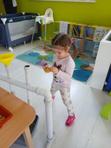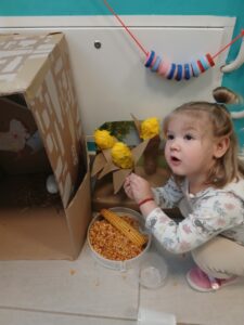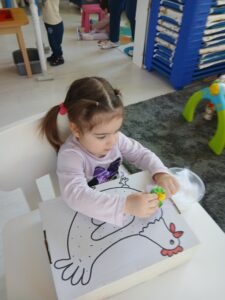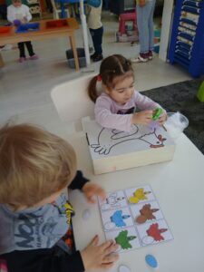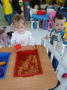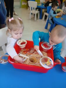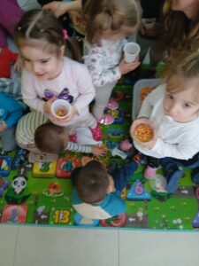 Посматрали смо активност са децом коју нам је, у оквиру рада Актива васпитача узрасних група показала васпитач Маја Комадина. Ово је старија јаслена група. Ми , чланови Актива том приликом смо учили, преиспитивали сопствену праксу, знање и уверења, уживали у савршенству дечјег стварања , откривања, тражења другачијих решења. Мноштво припремљених средстава и материјала, брижљиво осмишљених и израђених, са сврхом, функцијом, естетским моментом, у служби актуелног пројекта, у служби детета.