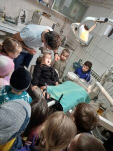У оквиру пројекта „Људско тело“, деца из групе васпитача Марије и Маје, из објекта „Чаробњаци“, имала су прилику да посете зубарску ординацију и на непосредан начин упознају занимање зубара, као и значај бриге о здрављу зуба.