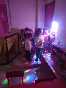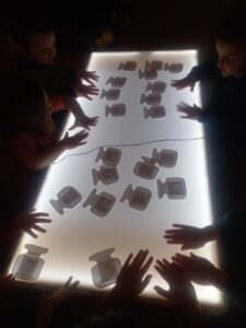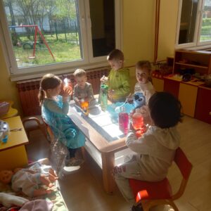 У оквиру пројекта ,,Ћирибу-ћириба”, деца васпитача Радмиле и Драгане, из групе ,,Сунце”, објекат ,,Звончићи”, имала су прилику да откривају и истражују чаролију светлости, сенки и облика. Кроз игру и активности деца су развијала креативне способности и уживала у магији израде светлећих и сензорних продуката.