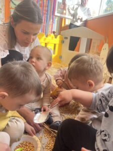 Васпитач Бранислава Човић , приказала је прошле недеље рад са децом, у оквиру рада Актива и континуираног стручног усавршавања . То је васпитна група наших јасленаца, који још увек немају пуне две године. Добро припремљен простор, разноврсни материјали и средства који мотивишу децу и позивају их на учешће, на сарадњу, а тема њима блиска и омиљена- животиње. Васпитач који подржава, прилагођава, препознаје потребе и жеље деце, прилагођава темпо и динамику активности могућностима деце… Гледали смо решавање проблема кроз лавиринт, чулна опажања, подстицање развоја говора кроз именовање животиња, оглашавање… Игре и активности атрактивне, привлачне деци, дају им потврду о успешности кроз бављење. Колегиницама које су биле присутне виделе су још један пример доброг рада васпитача.