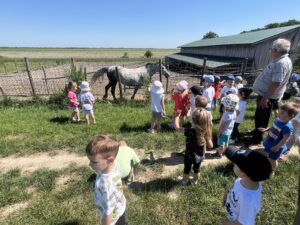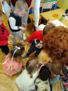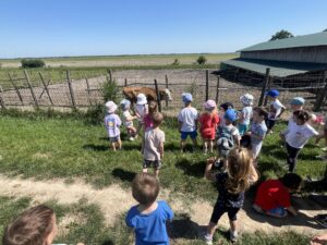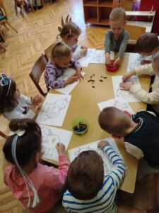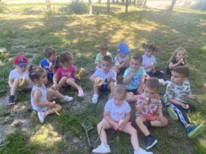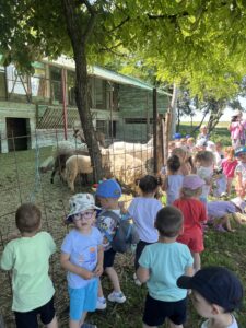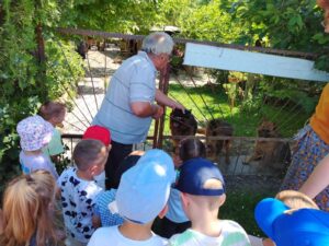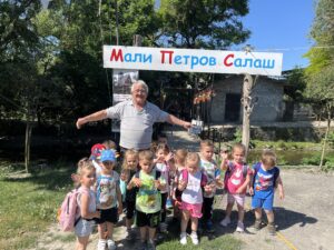 Сазнајемо да су деца из групе „Совице“ у пројекту „Животињско царство“ а деца из групе „Цветићи“ у пројекту „Пут око света са 100 шапа“. Пројекти су слични. Групе започињу заједничко дружење кроз размену материјала, међусобне посете, заједничко читање прича, бојање, игре улога (млекари, фармери…), певање песмица. Све активности су са лакоћом реализоване, јер су теме блиске деци . Како се ближио крај школске године и завршетку пројеката, на предлог родитеља, посетили смо „Мали Петров салаш“ и тамо организовали завршетак пројекта. Васпитачи Јасмина Бојковић; Дијана Милићевић, Бранислава Човић и медицинска сестра васпитач Татјана Кршић, са својим групама, уз несебичну помоћ превозника Кртинић М.М. и топлу добродошлицу Петра Рашете доживела су незаборавну авантуру. Деца су могла да виде велики број домаћих животиња. Нека од њих по први пут су пробала чика Перине „чаробне колаче“ (хлеб, маст од мнгулице, паприка).