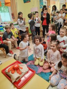 Децу и васпитаче Станиславу Јововић и Марију Рашету, из објекта „Звончићи“, посетила су деца другог разреда ОШ “Жарко Зрењанин” са учитељицом Маријом Дураковић. Деца су међусобно повезивала знања и искуства о тренутном пројекту “Планета Земља”. Млађи су учили од старијих, али и старија деца од млађих. На крају нашег дружења деца из вртића су приказала ексеперимент “Ерупција вулкана”, те заједно проширивала своја знања.