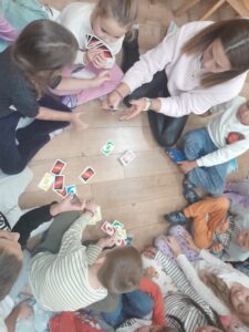 Јанина мама и Јана су нам представиле своју омиљену породичну игру “Уно” и научиле нас правилима ове игре.