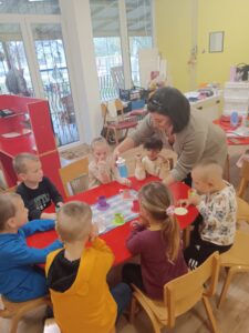 У оквиру пројекта “У вртићу сам, хоћу кући”, деца и васпитачи Александра Десница и Марина Муфић, проширивали су активности на читање бајки, драматизацију и глуму. Направили су посебну атмосферу, уз топли напитак десила се “Чајанка код Маше”. Д2ца су уживала у читању приче “Алиса у земљи чуда”, а затим “одигравала” један део бајке.