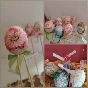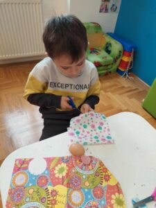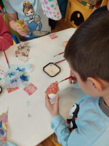 Кроз декупаж технику, деца су украшавала јаја, развијајући машту,